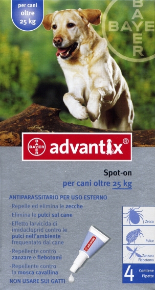 Advantix Cao Sol Uncao 4mlx4 +25kg, 400/2000 mg sol unção punctif VET