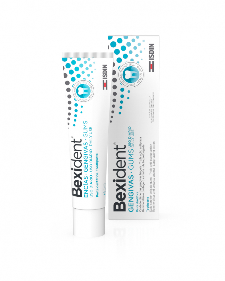 Pasta dentífrica recomendada para a higiene oral diária. Especialmente indicada para gengivas frágeis e/ou com risco de complicações devido à acumulação da placa dentária.