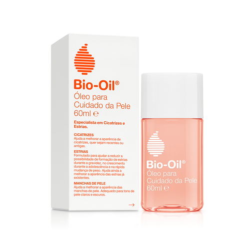 Bio-Oil® melhora a aparência de cicatrizes, estrias, manchas na pele e sinais de envelhecimento. O seu composto patenteado, PurCellin Oil™, melhora a consistência global da formulação, tornando-a leve e não gordurosa, garantindo que as vitaminas e extratos de plantas sejam eficazmente absorvidos pela pele. As vitaminas e óleos da formulação Bio-Oil® ajudam a aumentar a elasticidade e a uniformizar o tom de pele melhorando também a flexibilidade, hidratação e suavidade.