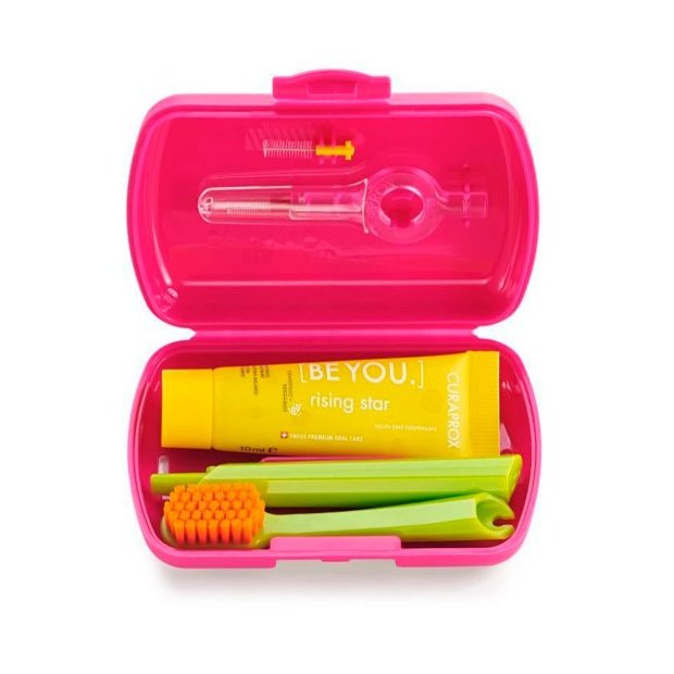 Kit de viagem composto por: 1 escova 5460 1 pasta dentrífica BEYOU Rising Star 2 escovilhões - CPS Prime 07 e CPS Prime 15