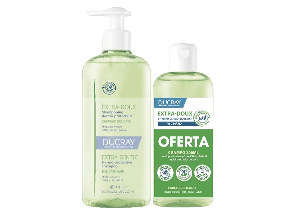 Ducray Extra-Doux Champô Hidratante Uso Frequente 400 ml com Oferta de 2ª Embalagem 200 ml