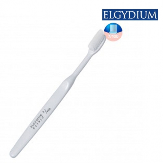 A ELGYDIUM CLINIC ULTRA-SUAVE 15/100 é uma escova de dentes com cerdas extra-suaves, de extremidade arredondada, concebida para a higiene diária dos dentes e gengivas.