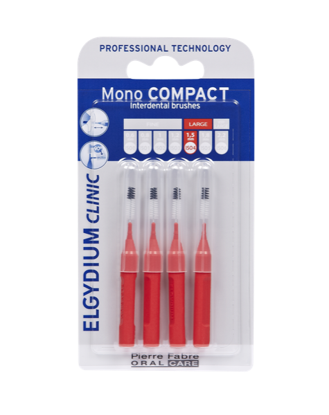 ELGYDIUM CLINIC ESCOVILHÕES MONO COMPACT são escovilhões concebidos para higienizar os espaços interdentários e impedir a formação de placa bacteriana entre os dentes. Como os espaços interdentários não são todos iguais, os escovilhões têm seis tamanhos, identificados por cores diferentes.Têm ainda cerdas bicolores: brancas para revelar as gengivas sensíveis em caso de sangramento, e pretas, mais finas, para facilitar a inserção da escova e visualizar a eliminação da placa bacteriana.