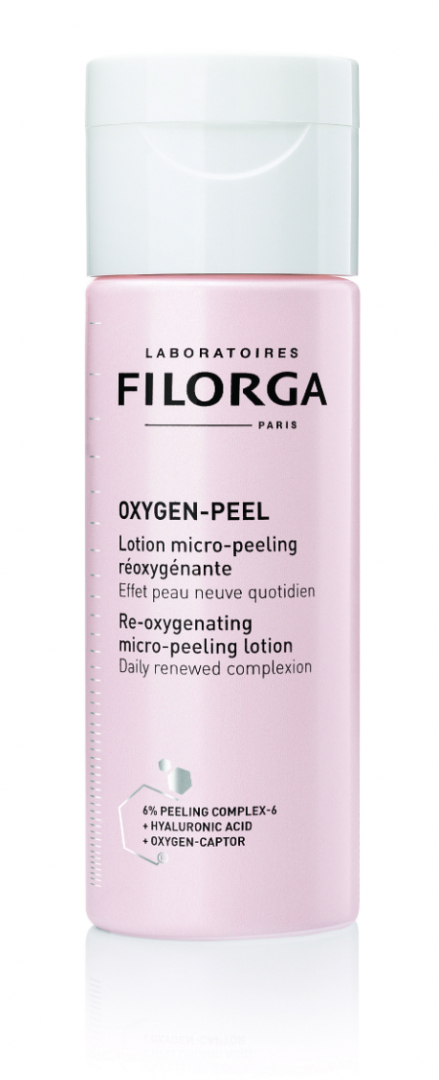 Loção micropeeling reoxigenante rugas - poros dilatados - falta de luminosidade - textura irregular da pele. Poluição, stress, fadiga, tabaco são alguns dos fatores que levam a pele a tornar-se baça e com uma aparência débil. Para oferecer a toda a pele sem vida um verdadeiro renascimento cutâneo, a Filorga criou a primeira loção micropeeling, adaptada a todos os tipos de pele para um efeito pele renovada diariamente. /Alisamento intenso: um cocktail micropeeling 6-6 que esfolia a pele com suavidade e alisa rugas e poros. /Hidratação ultra-refrescante: o ácido hialurónico rehidrata e preenche a pele em profundidade. /Reoxigenação revitalizante: os captadores de oxigénio bioativos favorecem a oxigenação celular e revelam uma tez fresca e luminosa. Efeito pele renovada em 7 dias desde a primeira aplicação: 100% pele lisa* 86% poros reduzidos* 96% pele mais luminosa & hidratada* 93% tez uniforme* *Testado sob controlo dermatológico. Estudo clínico 2017 - Oxygen Peel - Auto-avaliação (% de satisfação) - Aplicação 1x/dia - 30 sujeitos - 25 aos 60 anos - 28 dias.