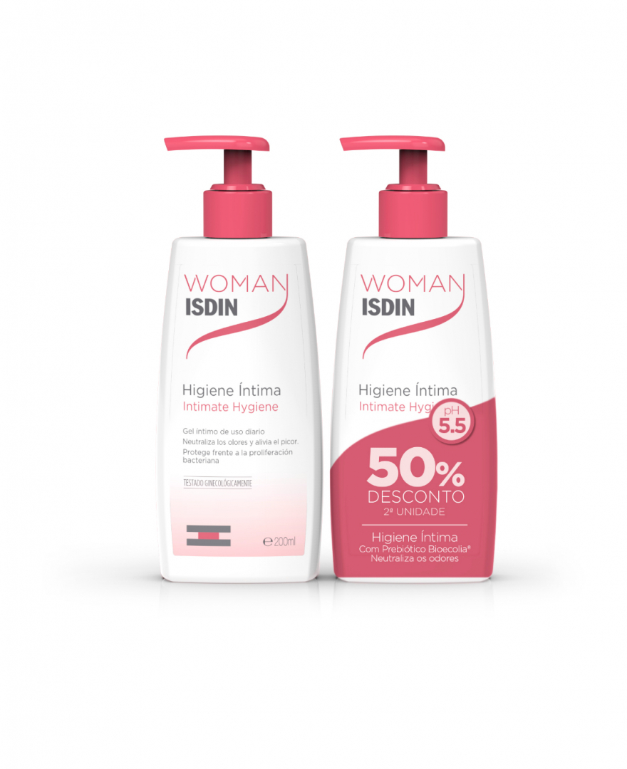 Woman ISDIN Higiene Íntima é um gel de cuidado íntimo suave, de uso diário, que neutraliza os odores, alivia o prurido e ajuda a prevenir contra agressões microbiológicas externas. Com pH 5.5.