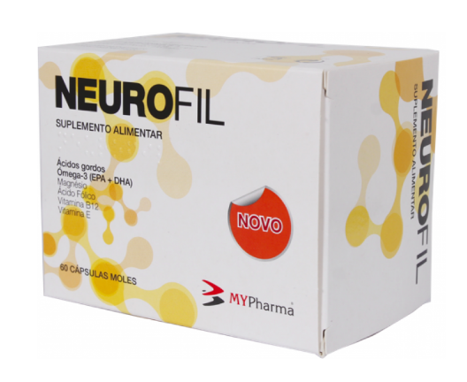 Neurofil 60 Cápsulas suplemento alimentar formulado com ácidos gordos ómega-3 (EPA + DHA), magnésio, ácido fólico, vitamina B12 e vitamina E.