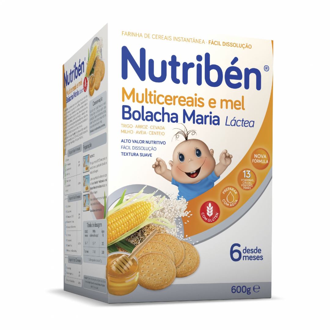 A papa Nutribén® Multicereais e mel Bolacha Maria L.A. é ideal como complemento à alimentação diária do bebé.