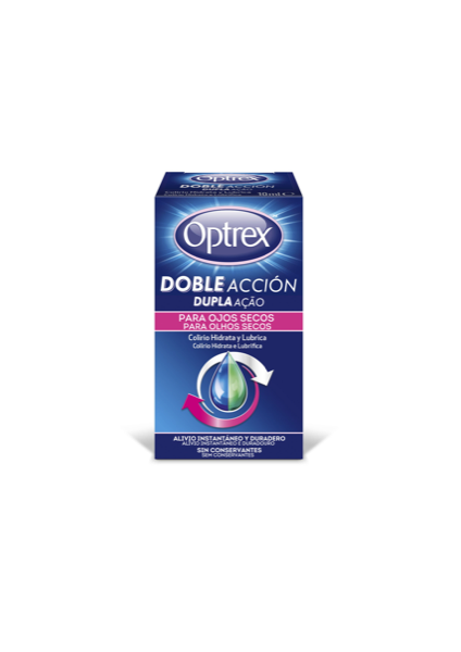 Optrex Colírio Dupla Ação Olhos Secos, sem conservantes, atua na superfície ocular para restaurar a sua hidratação natuarl, lubrifica profundamete a superfície ocular para um alívio instantâneo e duradouro.