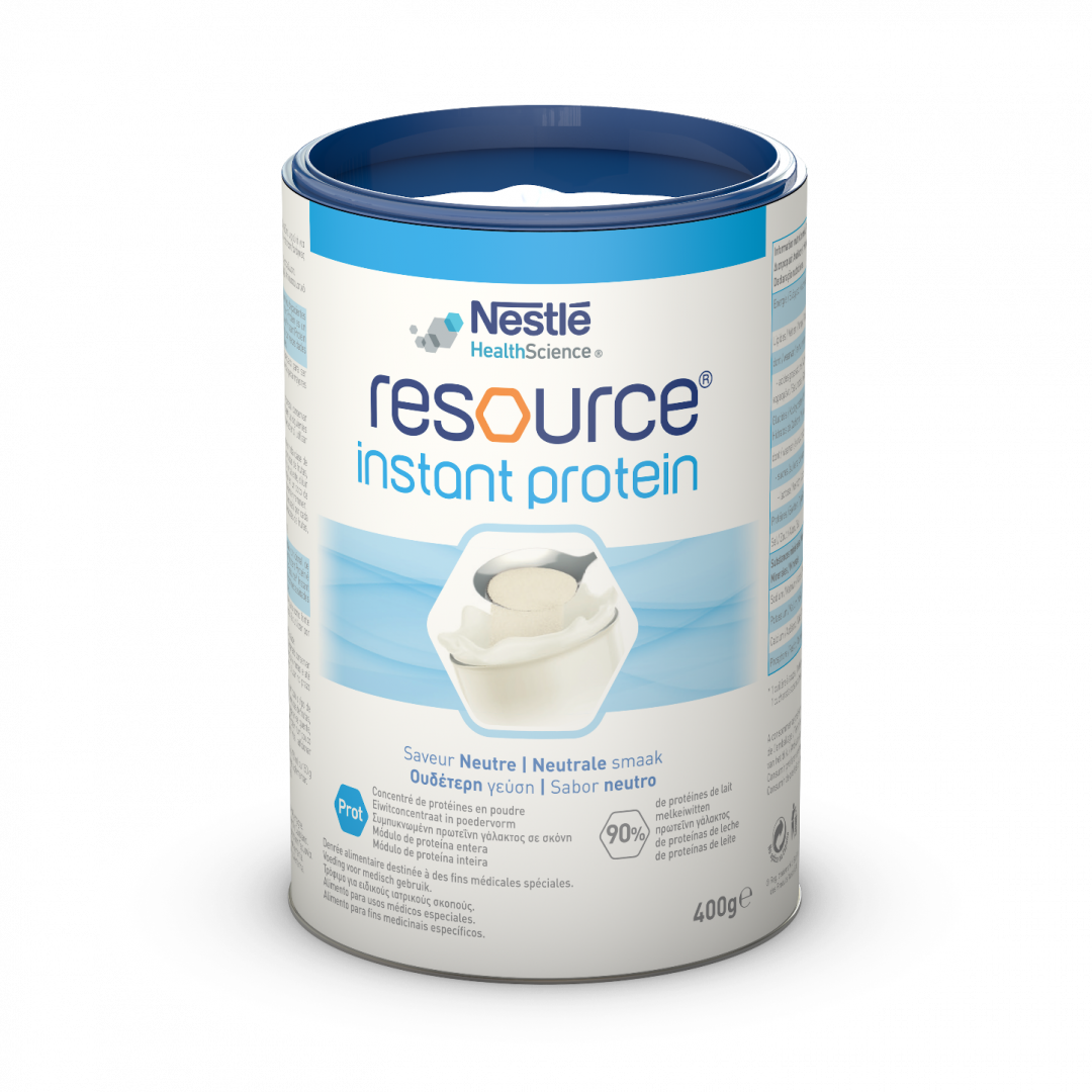 RESOURCE Instant Protein é um produto versátil, fácil de incluir em qualquer alimentação. O seu objetivo é aumentar o aporte proteico na dieta dos pacientes com necessidades proteicas aumentadas, sem alterar o sabor das refeições nem o nível de saciedade. Este dissolve-se facilmente em qualquer preparado líquido ou semissólido, sem alterar o seu sabor. Indicações: • Desnutrição proteica e/ou necessidades proteicas aumentadas •Pós-operatório de cirurgia bariátrica