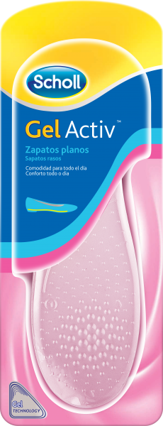 Palmilhas Scholl GelActiv™ para senhora. Indicadas para sapatos rasos e estreitos como sabrinas.