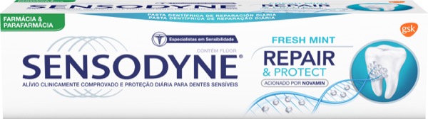 Sensodyne Repair & Protect está clinicamente comprovado no alívio eficaz e duradouro da sensibilidade dentária. Com escovagem duas vezes ao dia, o dentífrico Sensodyne Repair & Protect, com o seu ingrediente ativo NOVAMIN, localiza e repara as áreas sensíveis resultantes da exposição da dentina, a principal causa da sensibilidade dentária. Sabor a menta. Vendido em Farmácia e Parafarmácia. Dispositivo Médico. Leia cuidadosamente a rotulagem e as instruções de utilização.