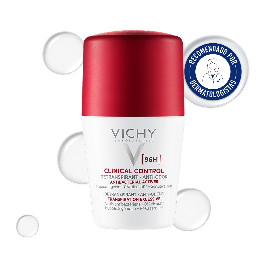 Aplicar o roll on Vichy Clinical Control 96 horas nas axilas perfeitamente limpas e secas, todos os dias.