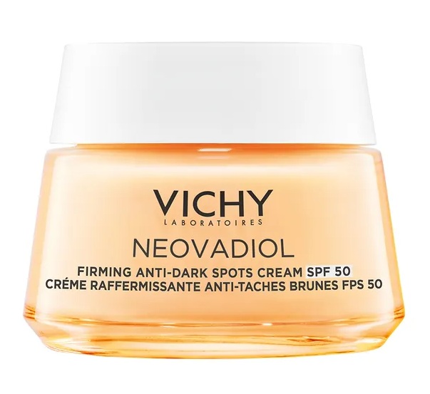 Após a menopausa, as alterações hormonais enfraquecem as defesas naturais da pele, tornando-a mais vulnerável à exposição aos raios UV.Isto leva a uma aceleração dos sinais de fotoenvelhecimento, tais como rugas, manchas escuras e perda de firmeza. Para além disso, a pele perde a sua luminosidade e elasticidade.Os Laboratórios Vichy desenvolveram o Novo Neovadiol Creme Refirmante Antimanchas FPS50 para proporcionar uma eficácia tripla na pele, respondendo às suas necessidades: manchas escuras, firmeza e rugas.