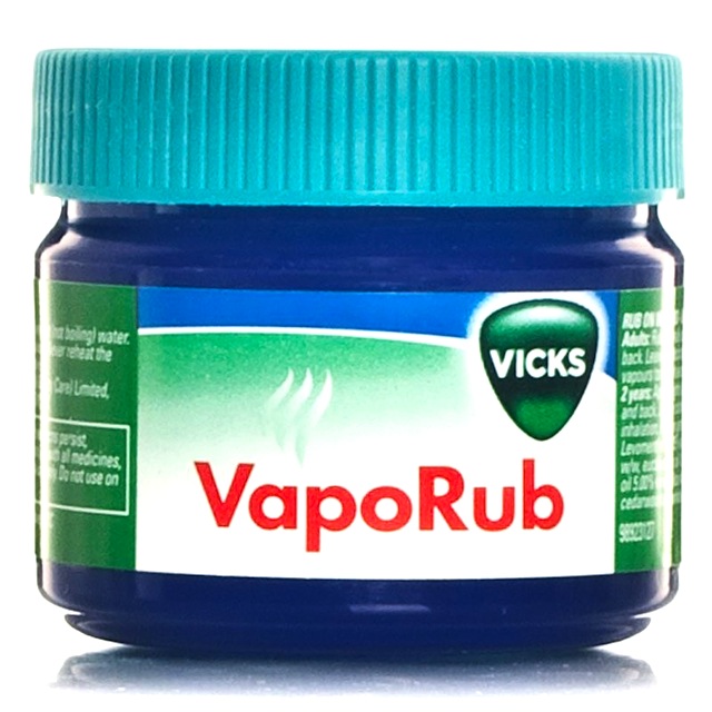 Adultos e Crianças com mais de 12 anos, 2-3 colheres de chá de Vicks Vaporub.