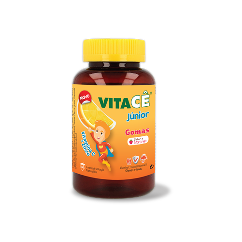 Vitacê ® Junior Gomas destina-se a crianças a partir dos 4 anos.Especialmente formulado para crianças (dos 4-12 anos), apresenta um agradável sabor a Tutti-frutti e uma fórmula avançada que combina o efeito da Vitamina C e do Zinco com os benefícios da Geleia Real e Própolis.